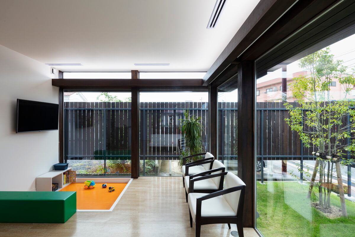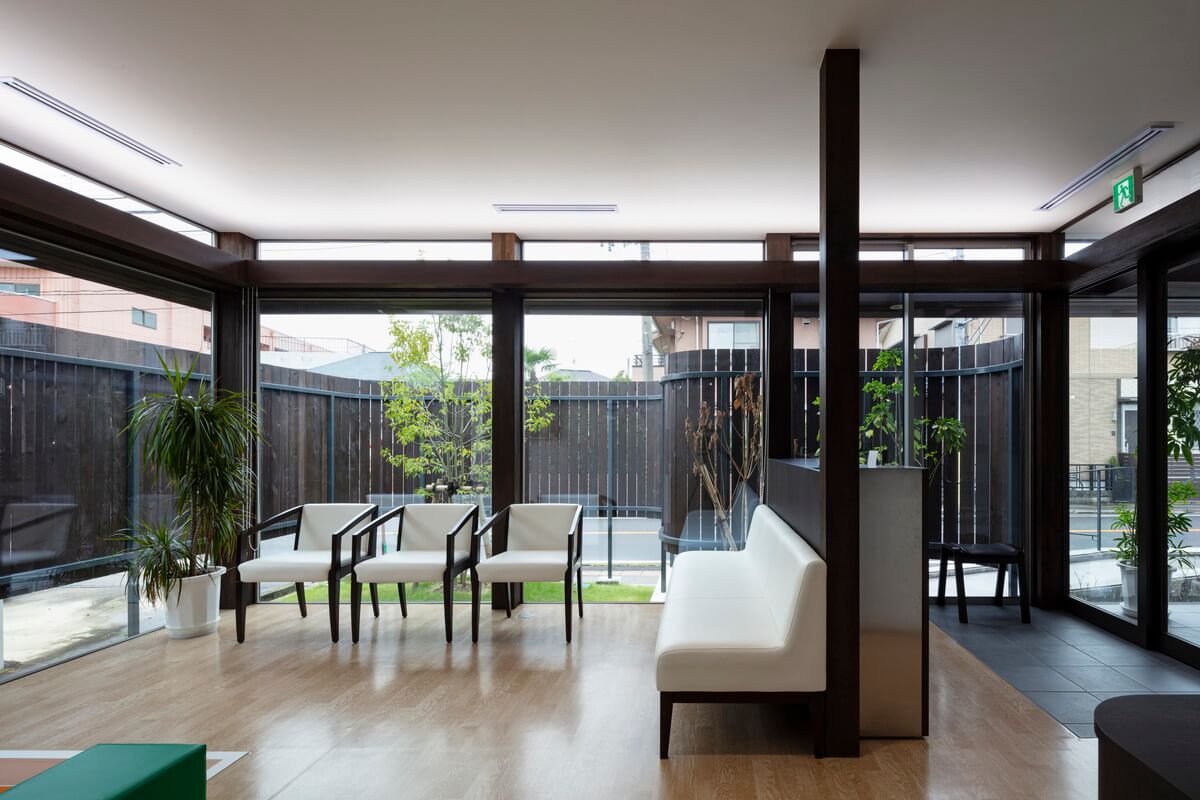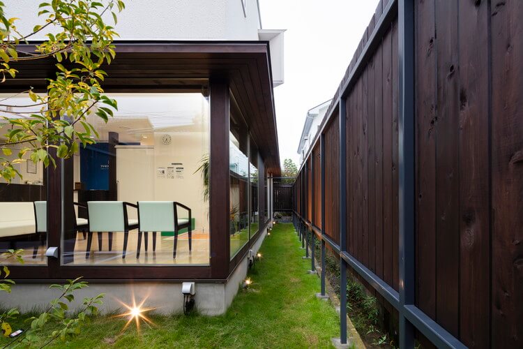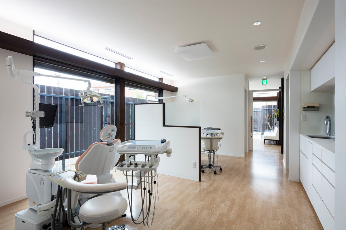 明るく開放的な歯科とは対照的に、住宅部分はまわりから見られたくないという要望を受けて、