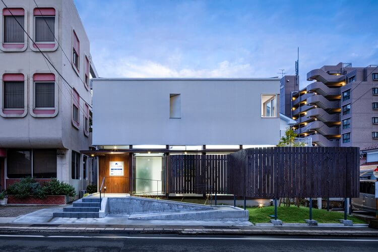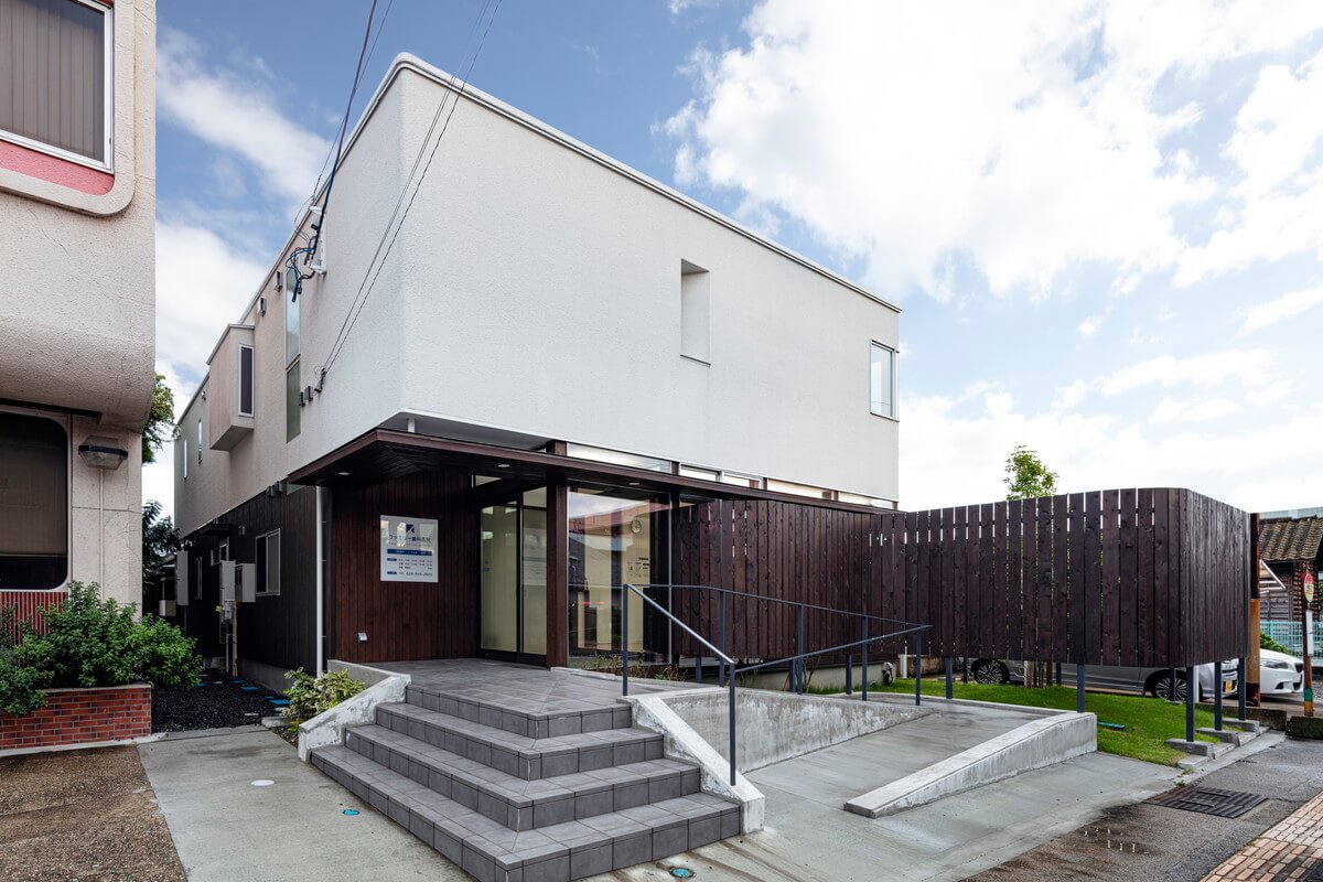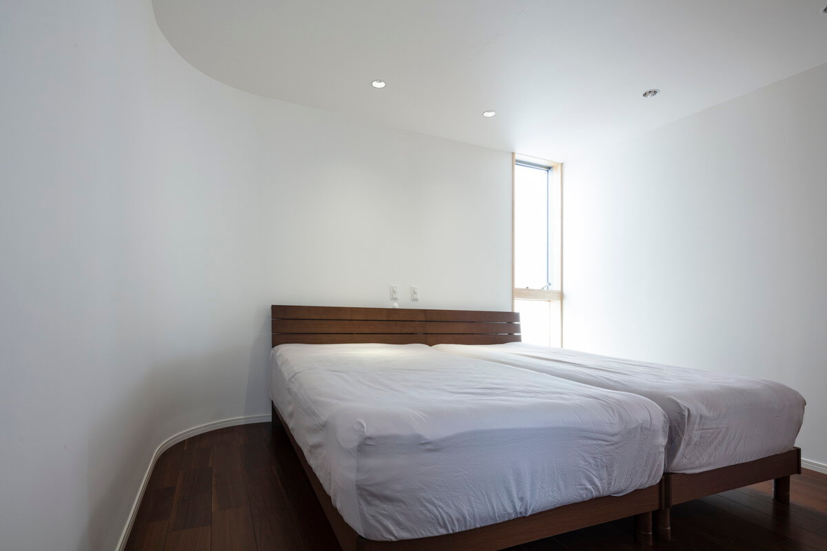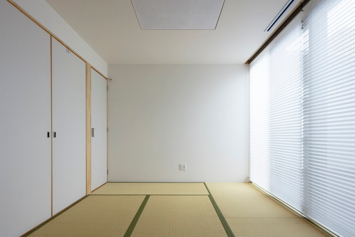 明るく開放的な歯科とは対照的に、住宅部分はまわりから見られたくないという要望を受けて、